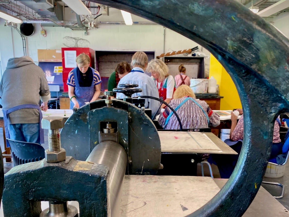 Art Matters print artists had a wonderful day at East Surrey College on Monday 12th May, printmaking, stencil cutting and book making. Our thanks to everyone at the college, especially Monica who looked after us, shared her skills and created such a wonderful day.