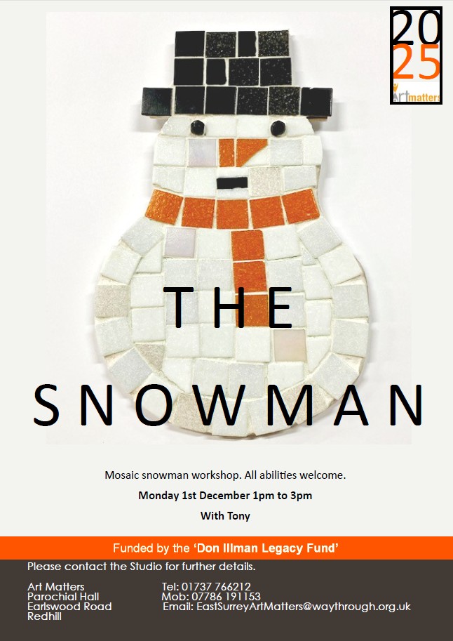 Mosaic snowman workshop. All abilities welcome.